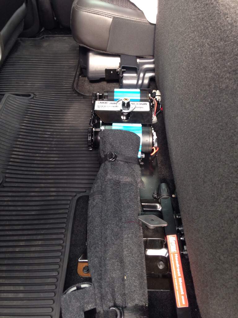 I have installed the onboard air compressor ( ARB CKMTA 12) in my raptor under the rear seat so it is out of the way and invisible, it is also a way to protect the compressor from dust, mud and water.